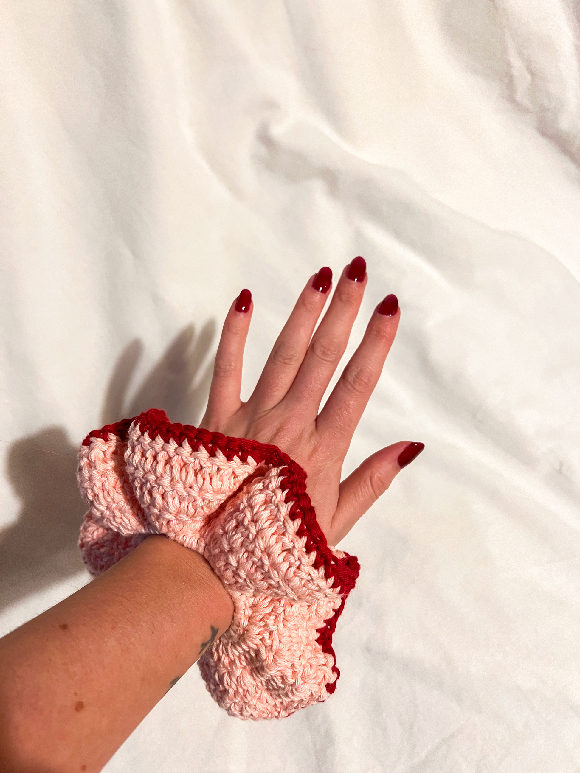 Denna virkade scrunchie ger en härlig touch till alla frisyrer. Oavsett om du klär upp dig för ett speciellt tillfälle eller håller det avslappnat, höjer denna mångsidiga accessoar din look. Finns i en mängd olika färger.