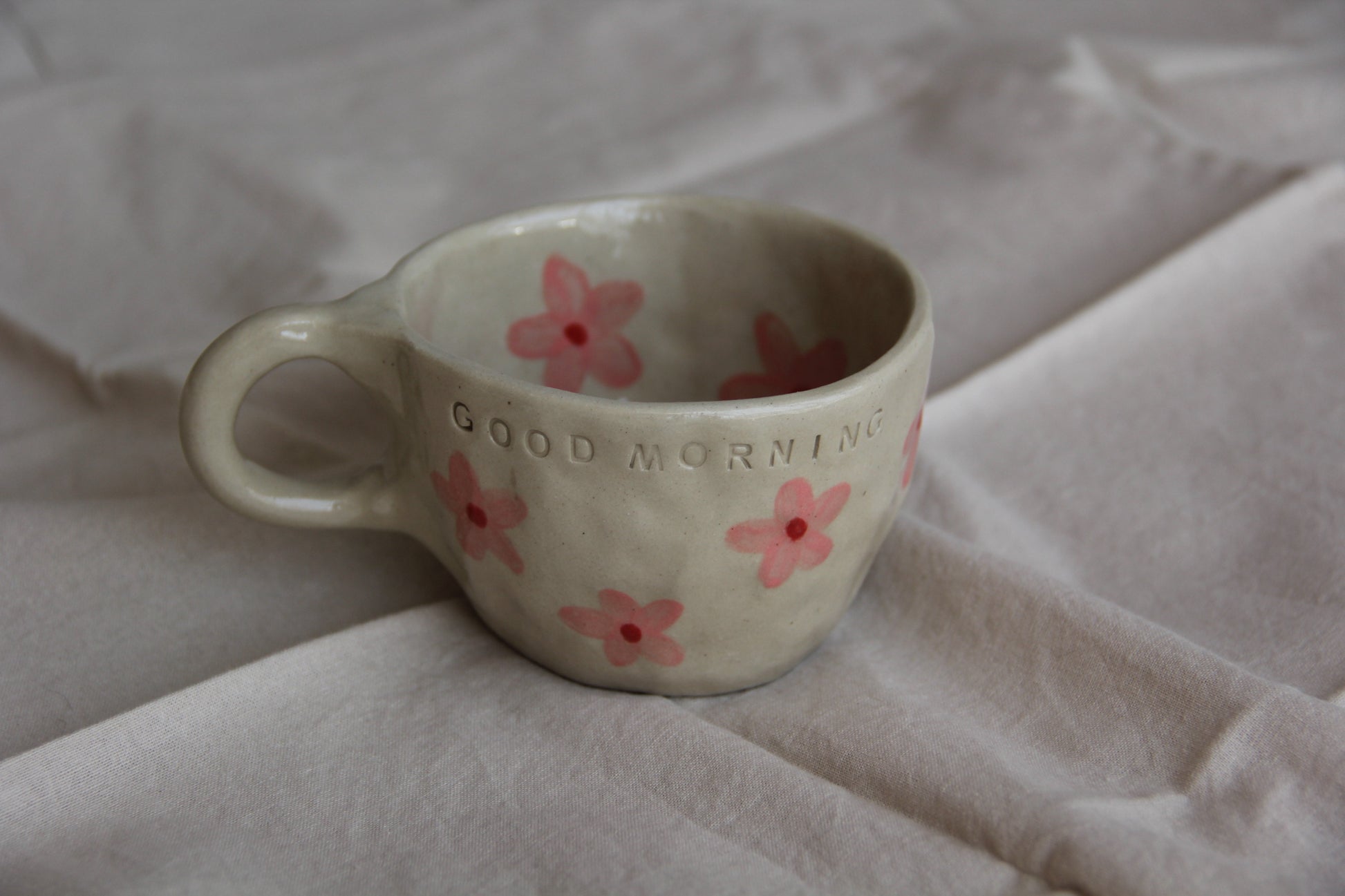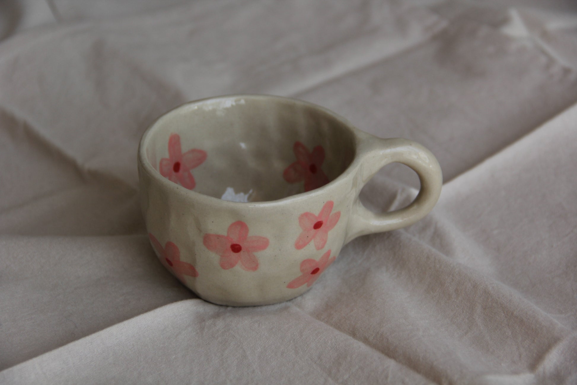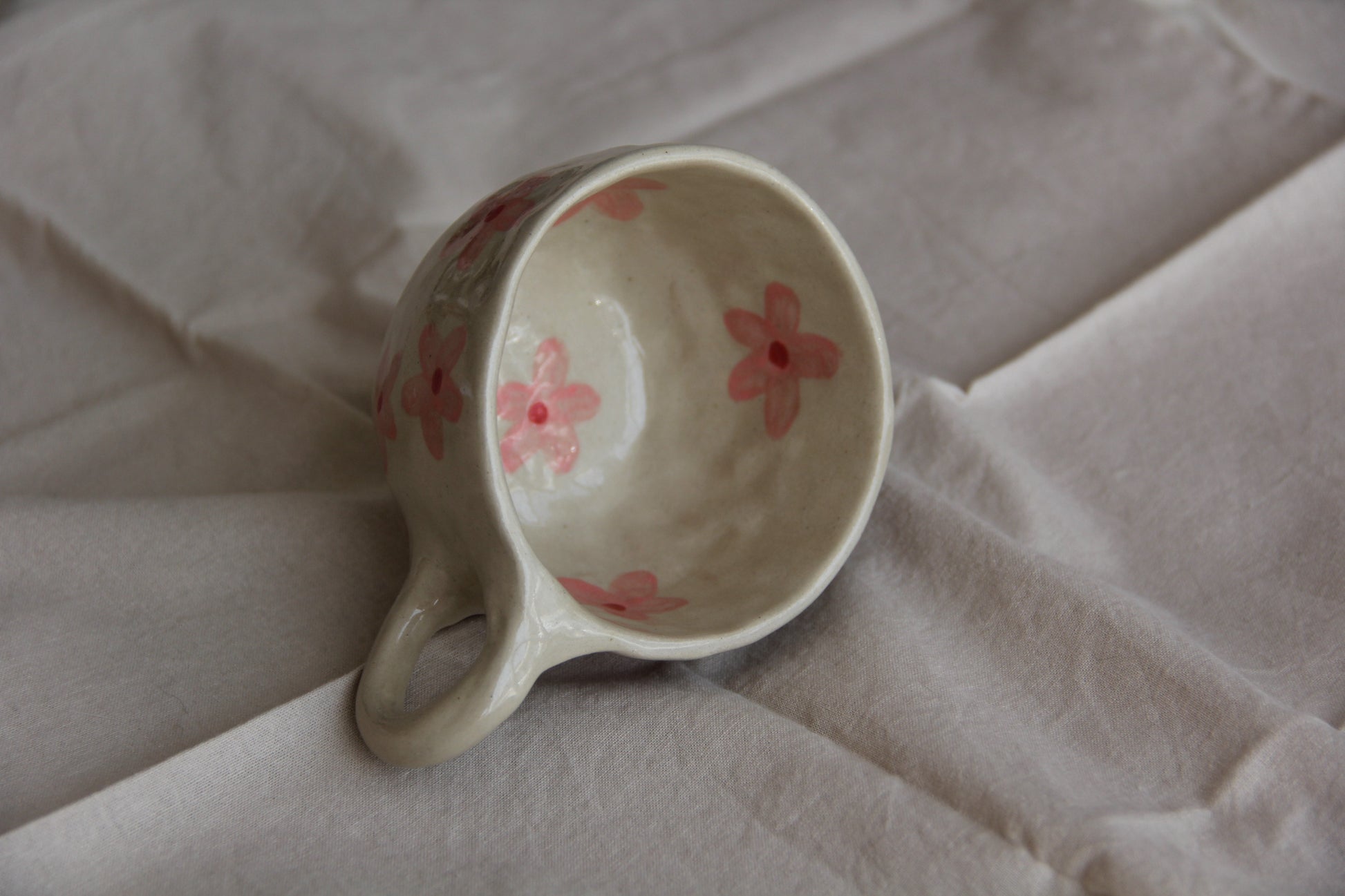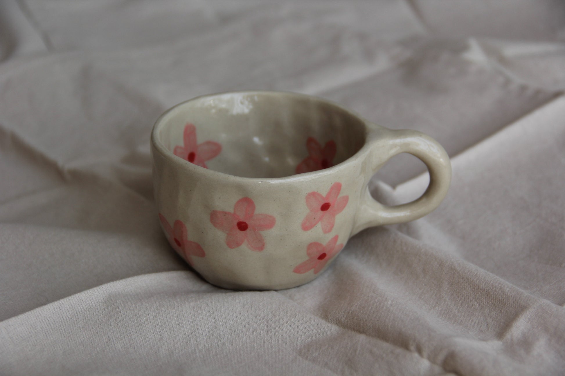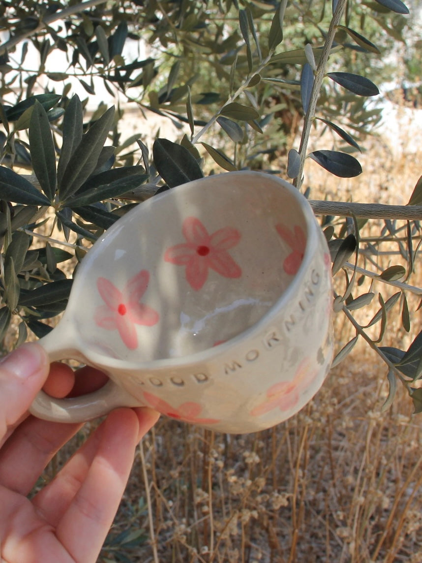 Observera: Eftersom varje mugg är handgjord, kan det förekomma små variationer i storlek och design, vilket bidrar till den unika karaktären hos detta föremål. Tål diskmaskin och mikrovågsugn.