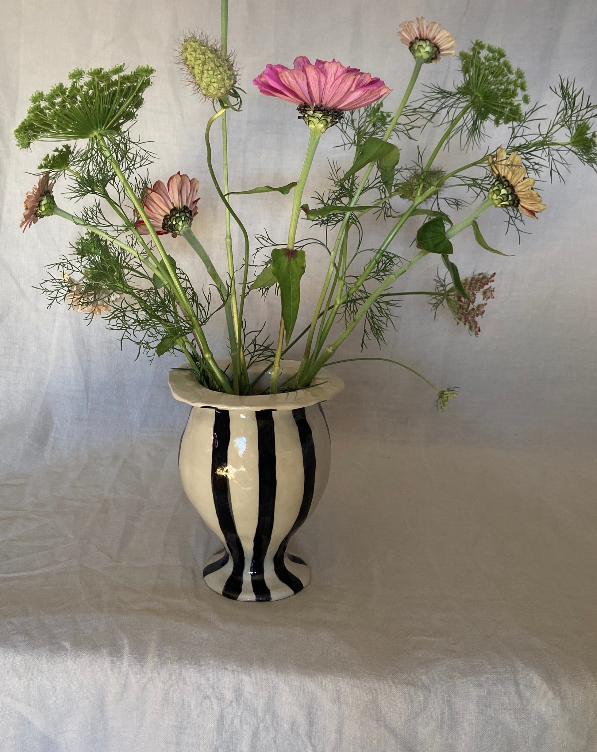 Detta är en rolig, handgjord vas med en unik form av keramikern Tahkamik. Dess unika form kommer verkligen att göra den till ett utmärkande inslag i ditt kök.