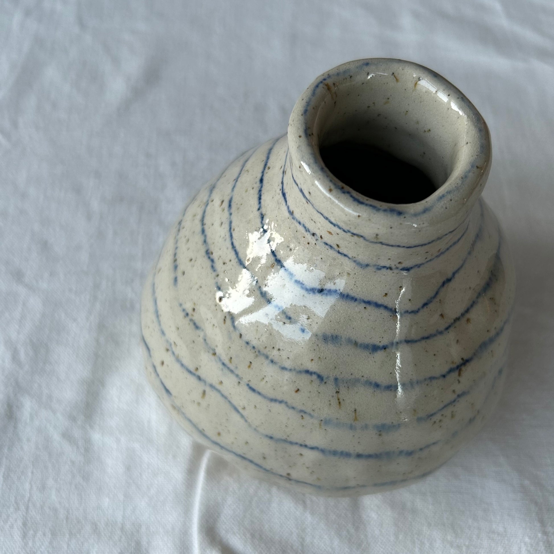 Handgjord keramik i stengodslera, målad med engobe och glaserad med en transparent glasyr.