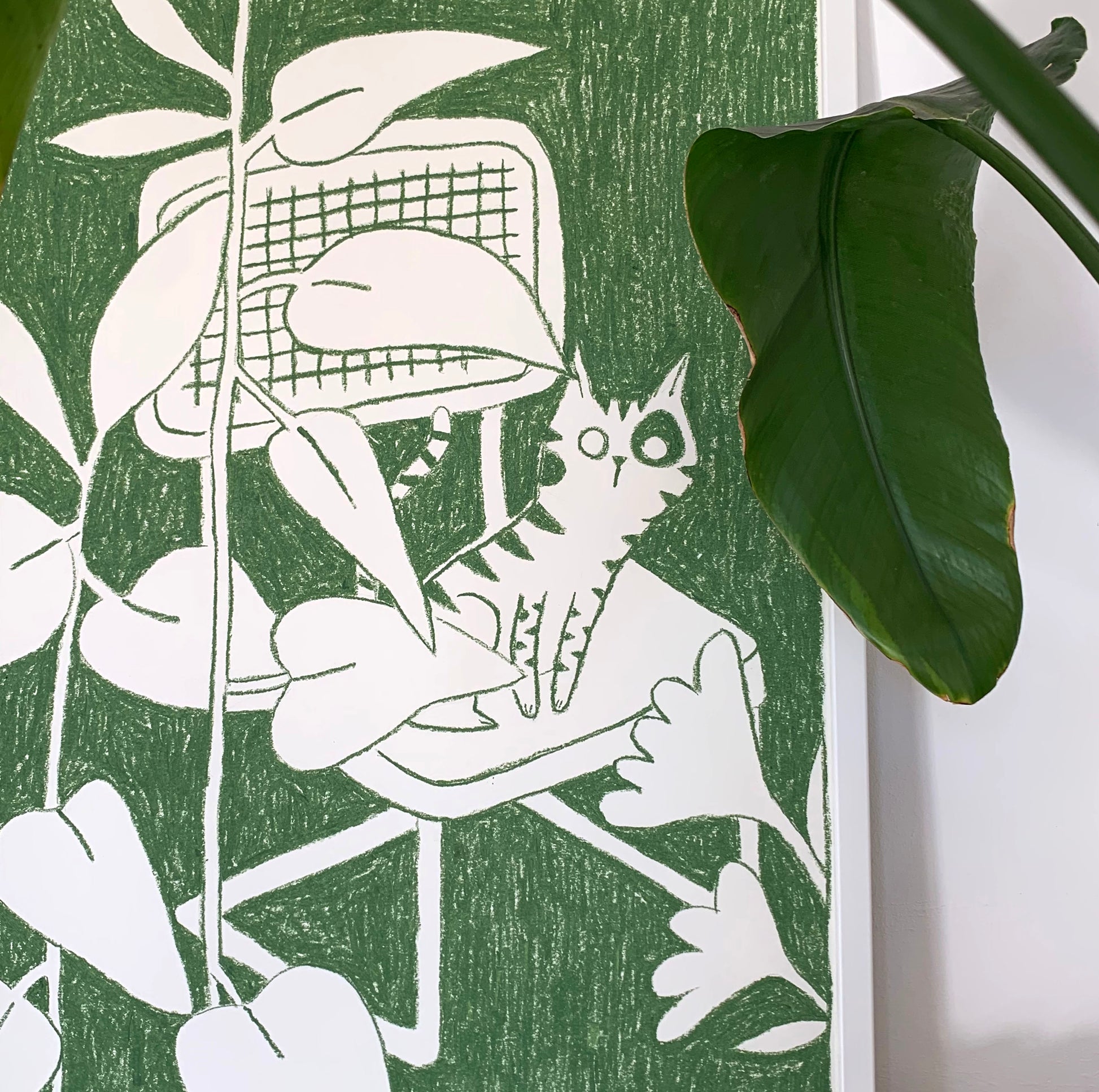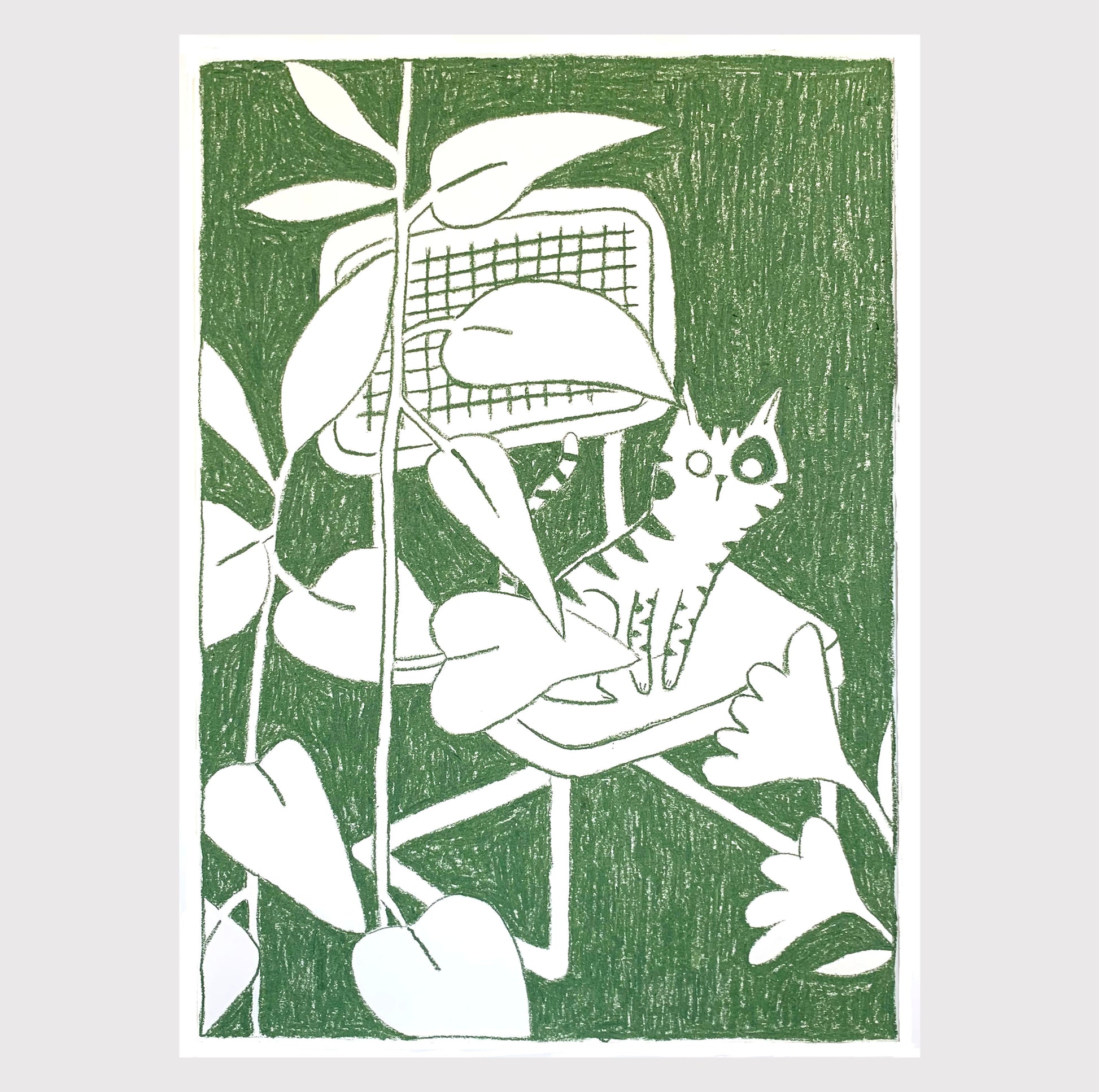 Originalmålning, skapad med oljepasteller i grönt på 250g Materica-papper.