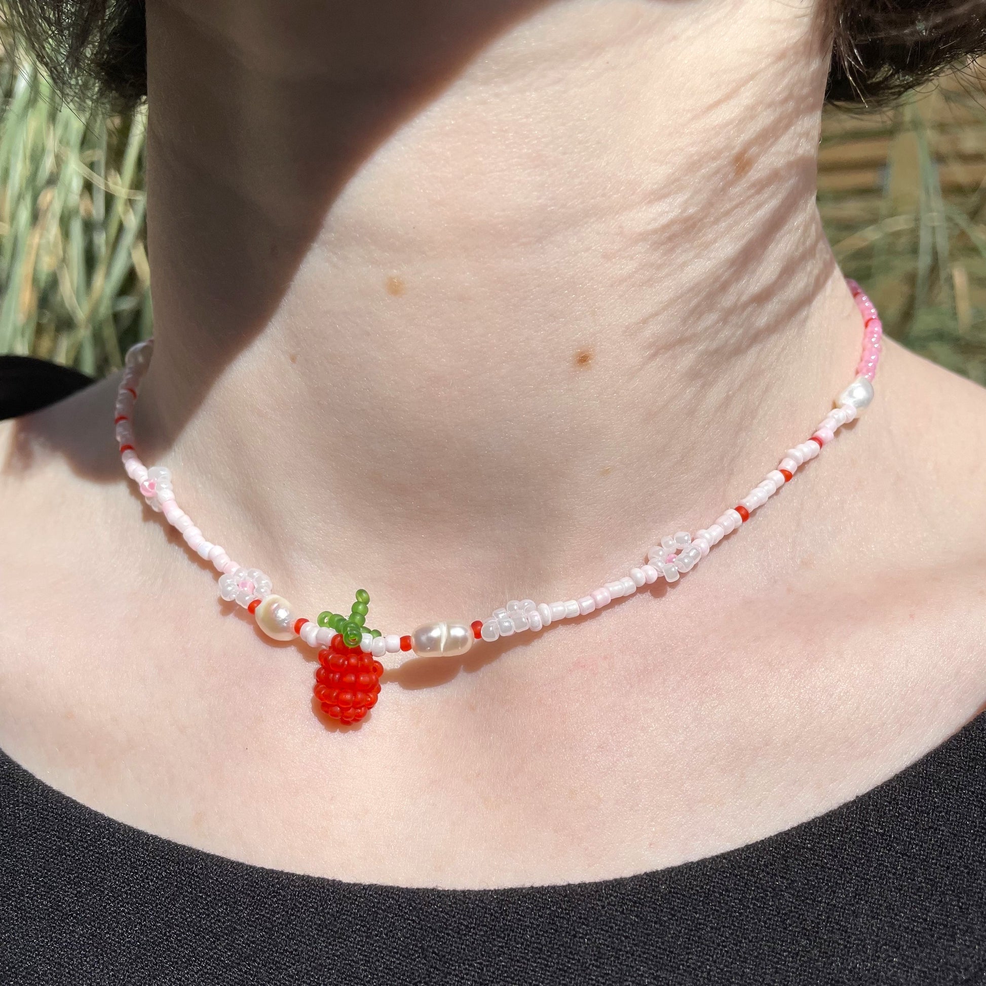 Pärlhalsband - Jordgubbe & Pärlor