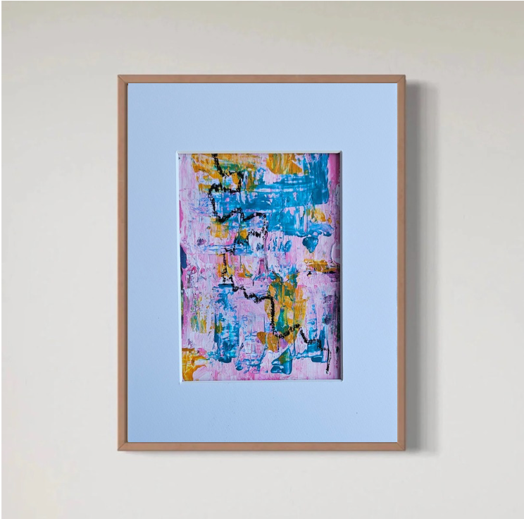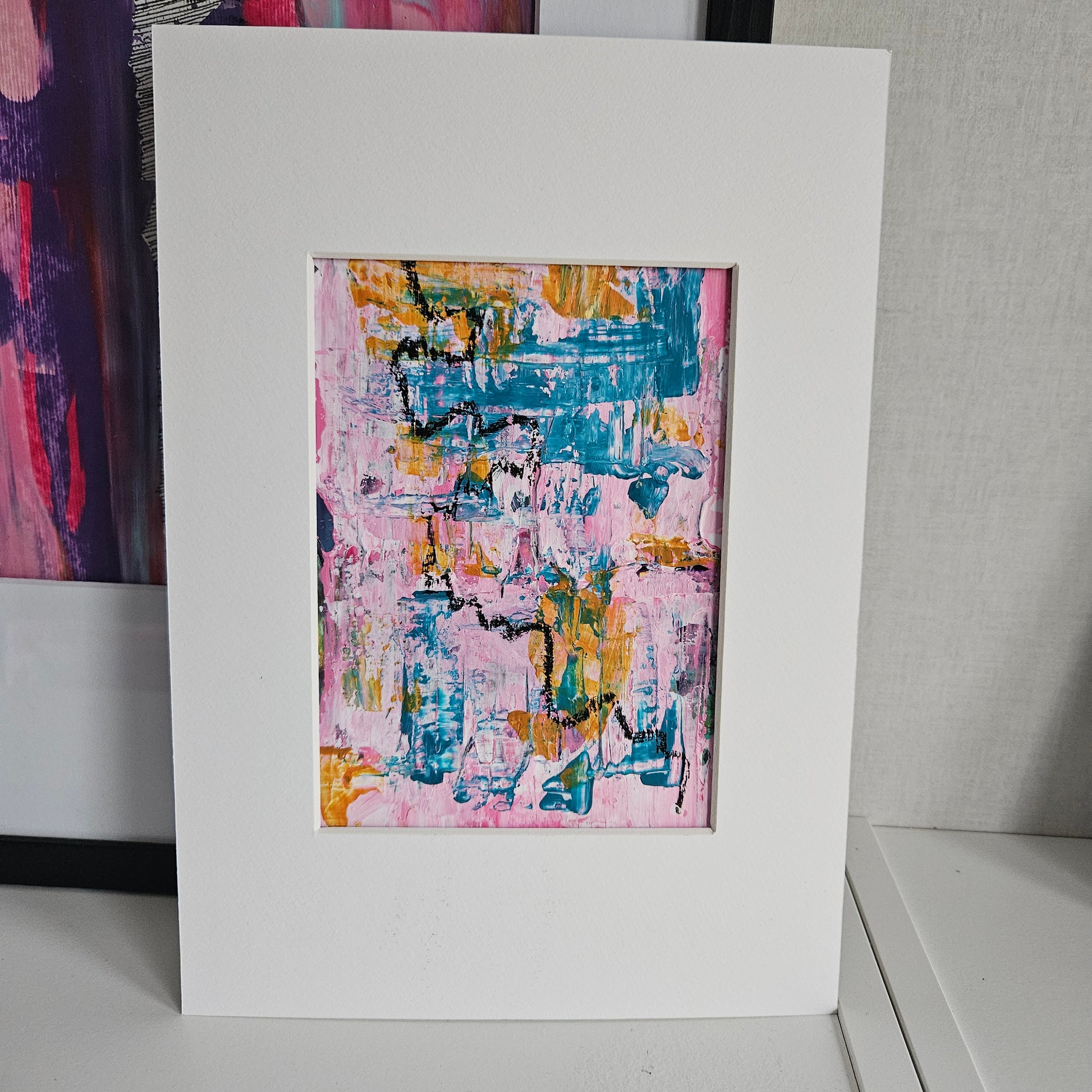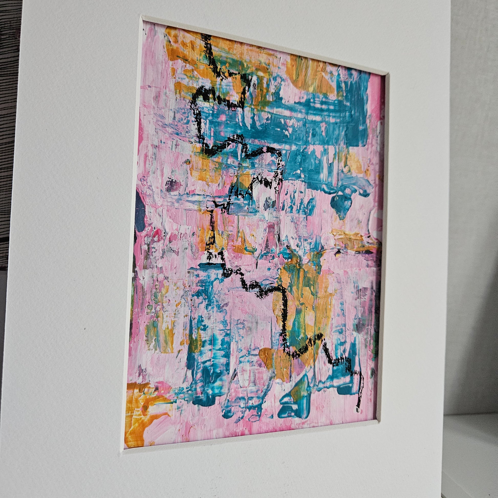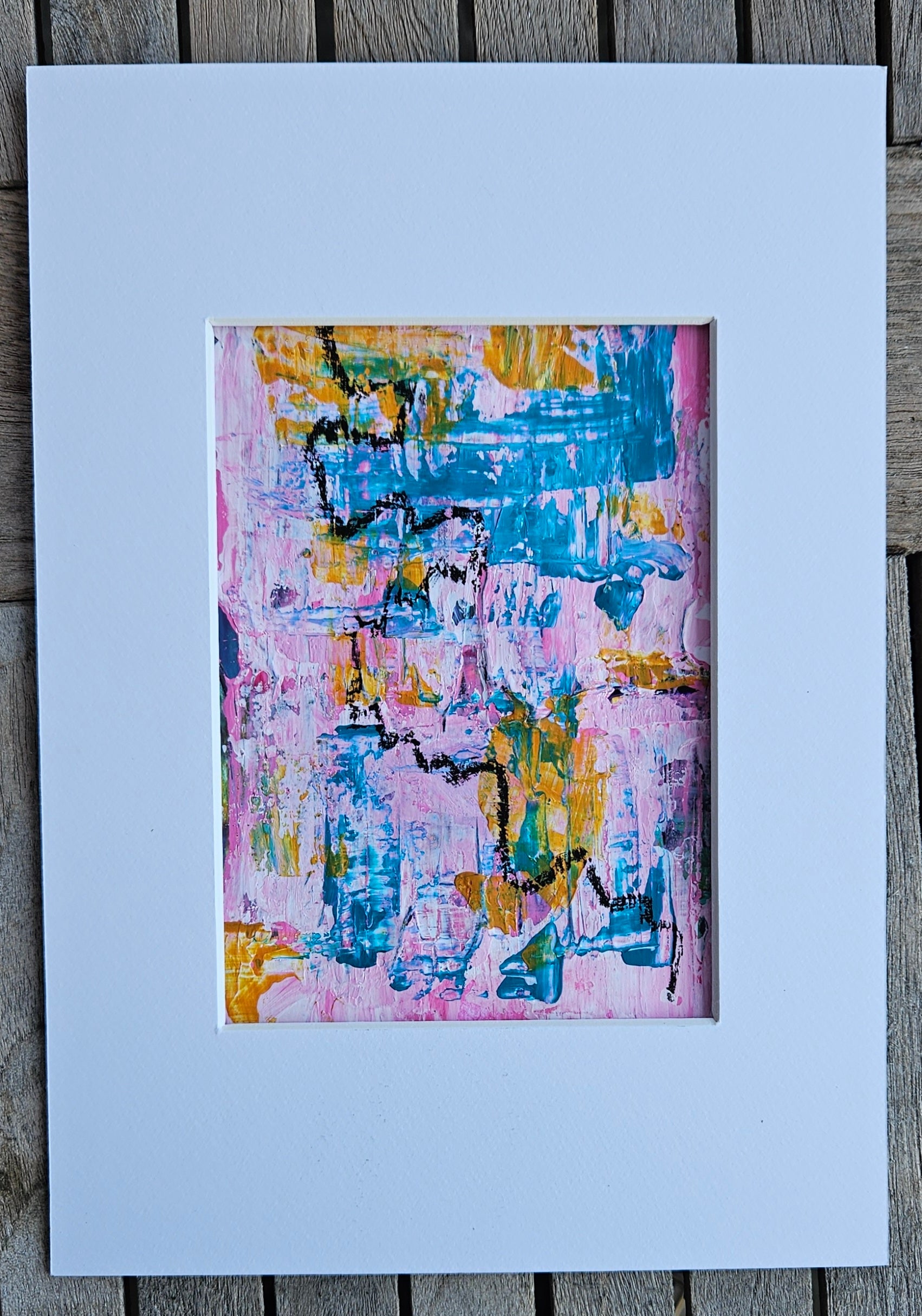 Ett bubblande konstverk som sprudlar av glädje, ett undertryckt fniss som är svårt att hålla tillbaka. Fånga känslan och följ med strömmen!