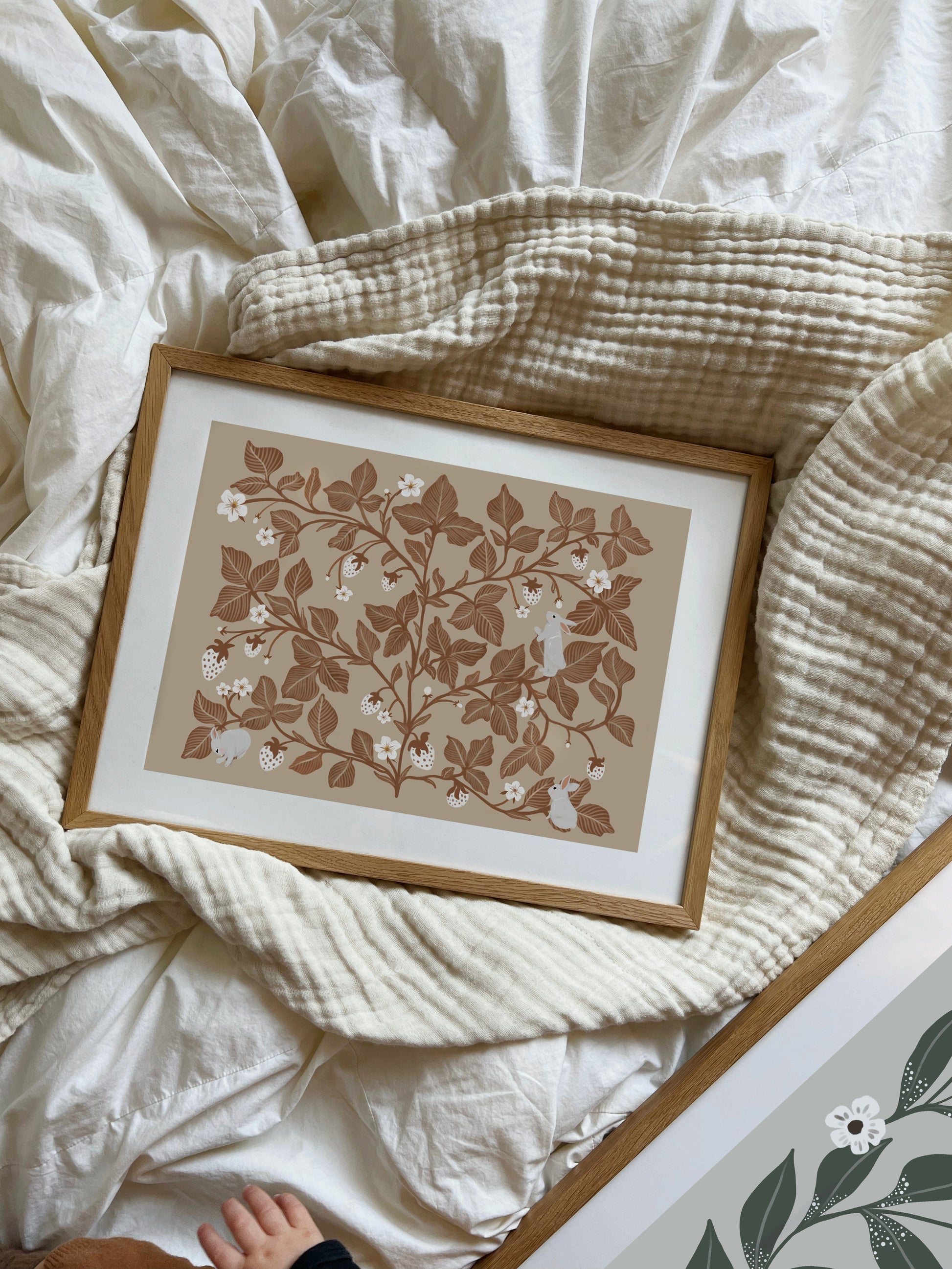 Ta in naturens skönhet i ditt hem med ”Sweet Harvest” – ett detaljrikt och varsamt illustrerat verk av Emma Älveus. Med intrikata blad- och blomsterillustrationer i varma, jordnära toner utstrålar denna poster en tidlös, ombonad känsla. Tryckt på Hahnemühle 210 g matt, högkvalitativt konstpapper, återges de fina linjerna och texturerna med enastående skärpa och precision.