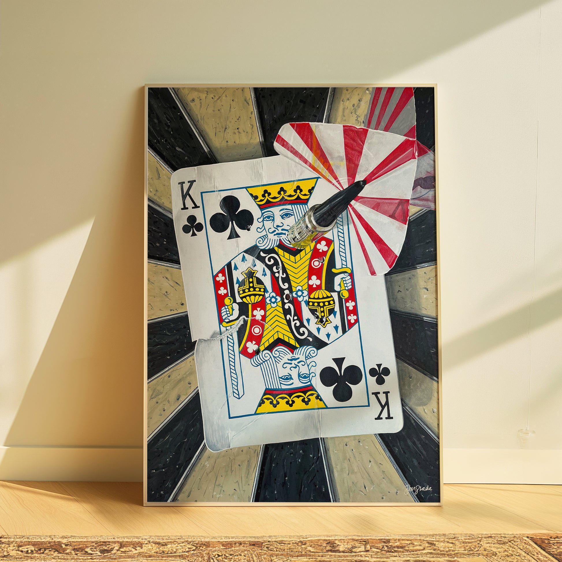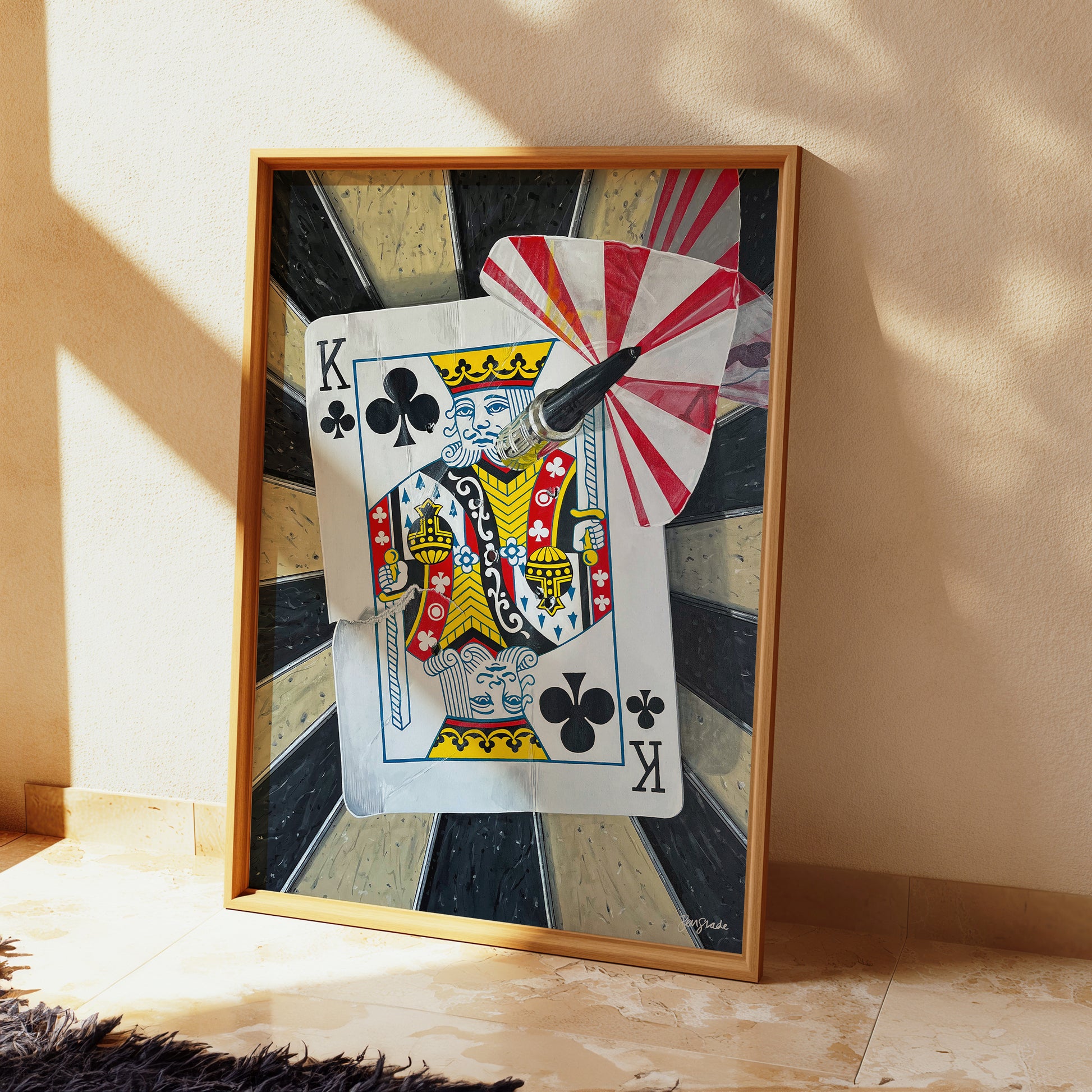 Tryckt reproduktion av det ursprungliga akrylkonstverket "The King is Dead" av Ben Slade.