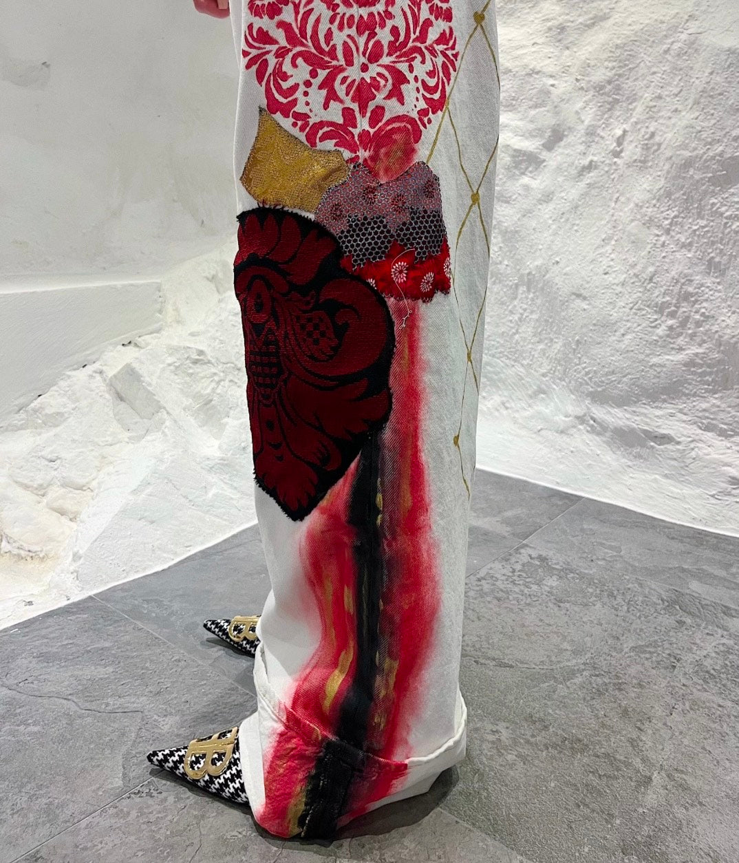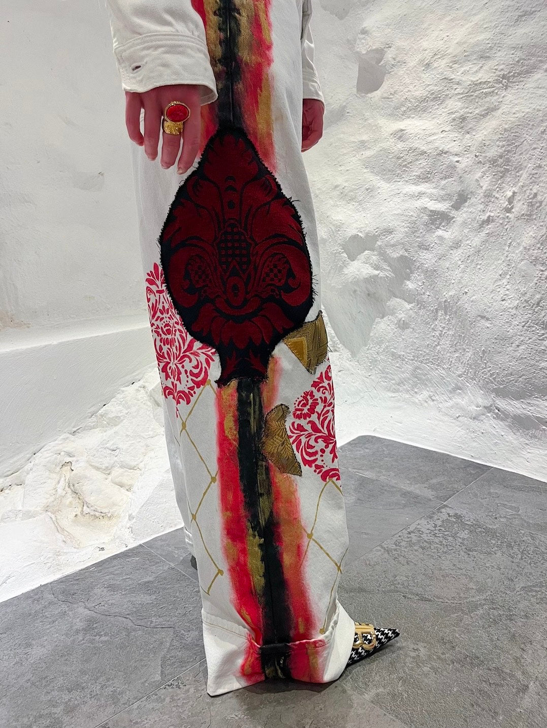 Handmålade och handdekorerade vita jeans