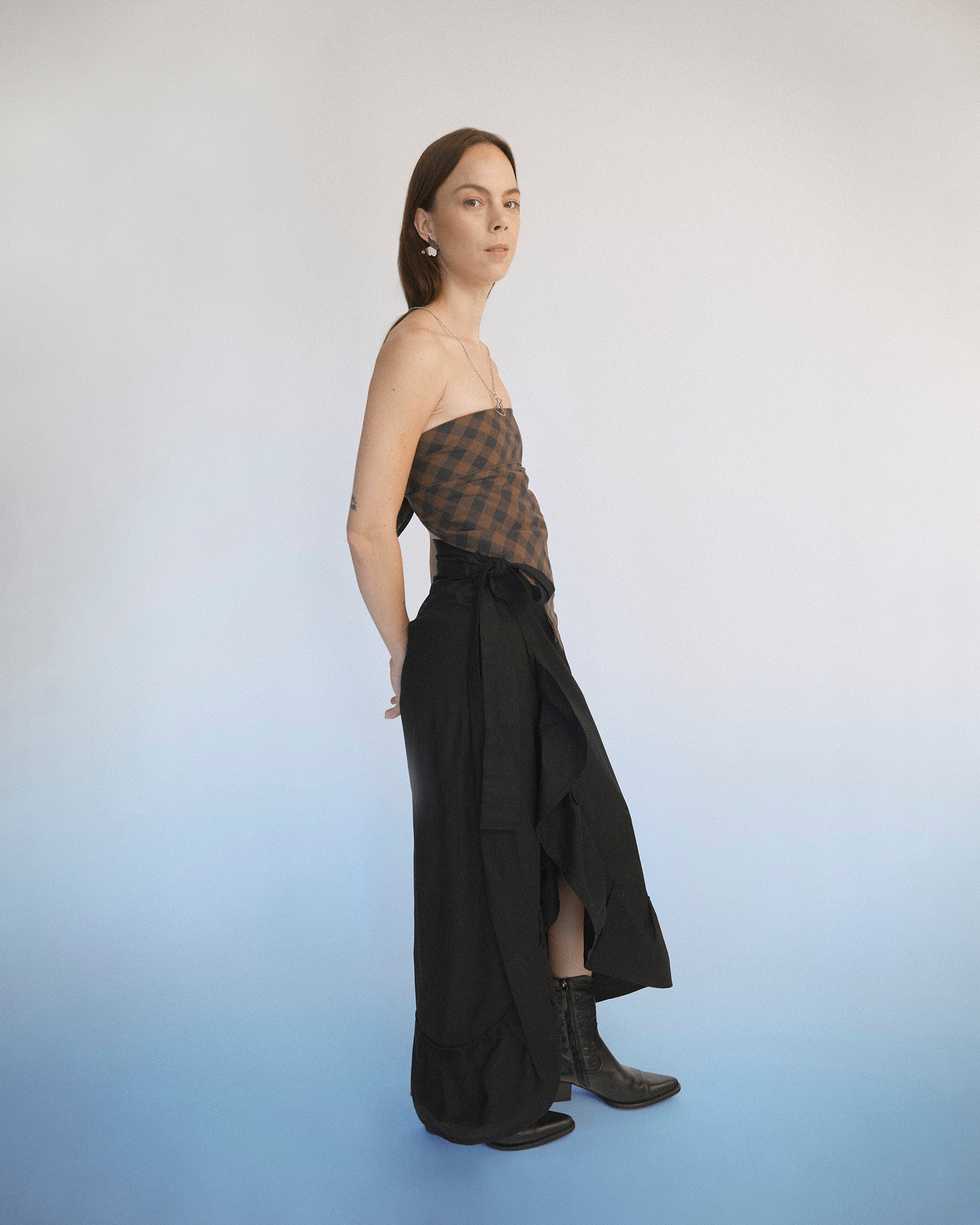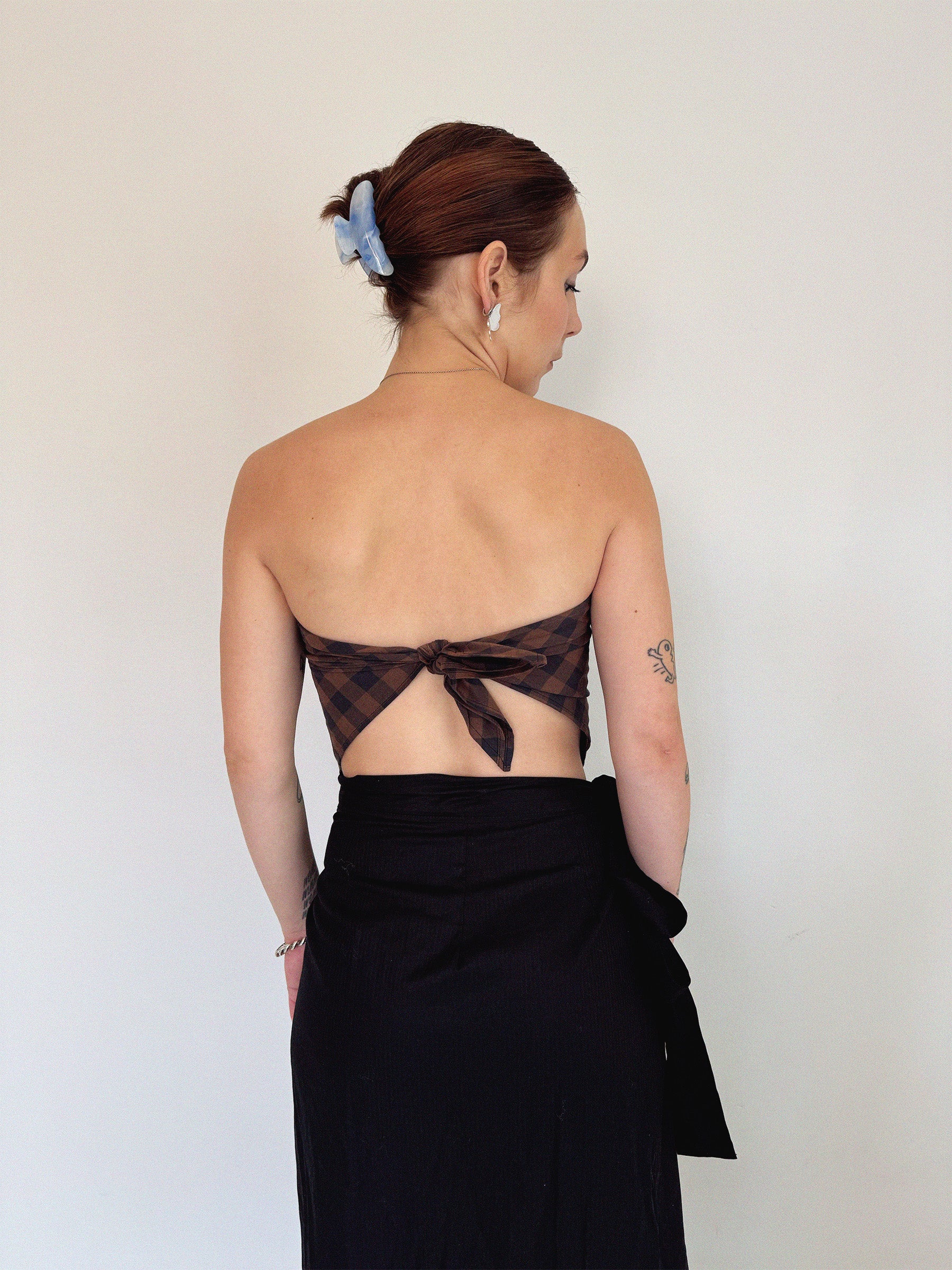 Whilde knyttopp är sydd i ekologisk dubbelvävd bomull, knyts i ryggen som en scarftopp. Det perfekta plagget för fest. Passar en storlek XS/S