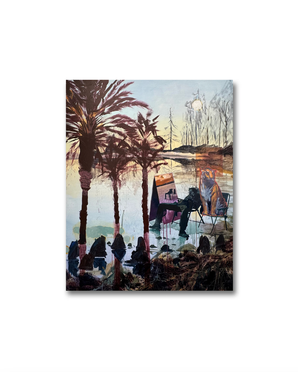 Jag kombinerar bilder och utrymmen till nya världar; i denna tar en man och en tiger plats i förgrunden, och delar sin närvaro inom bilden.