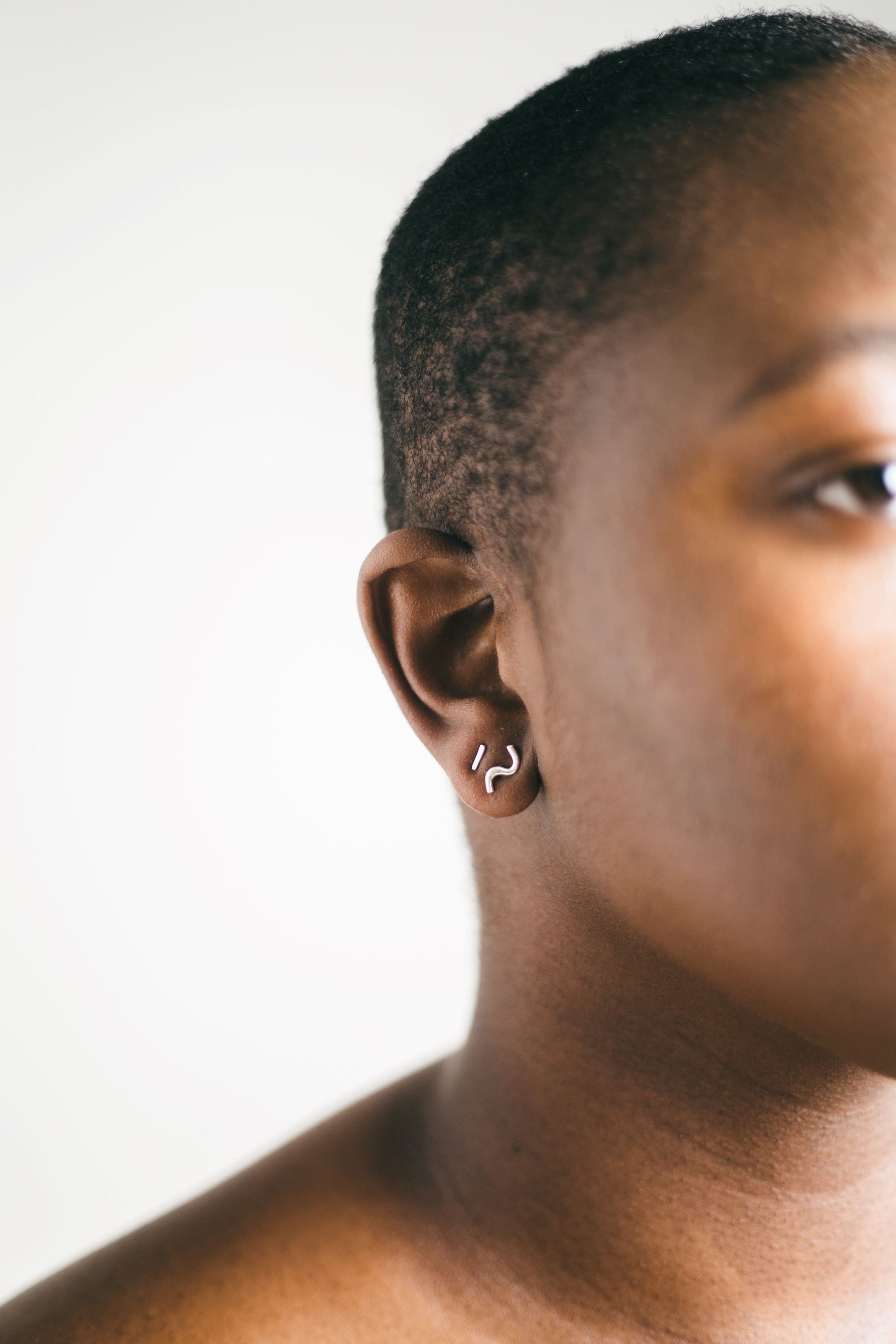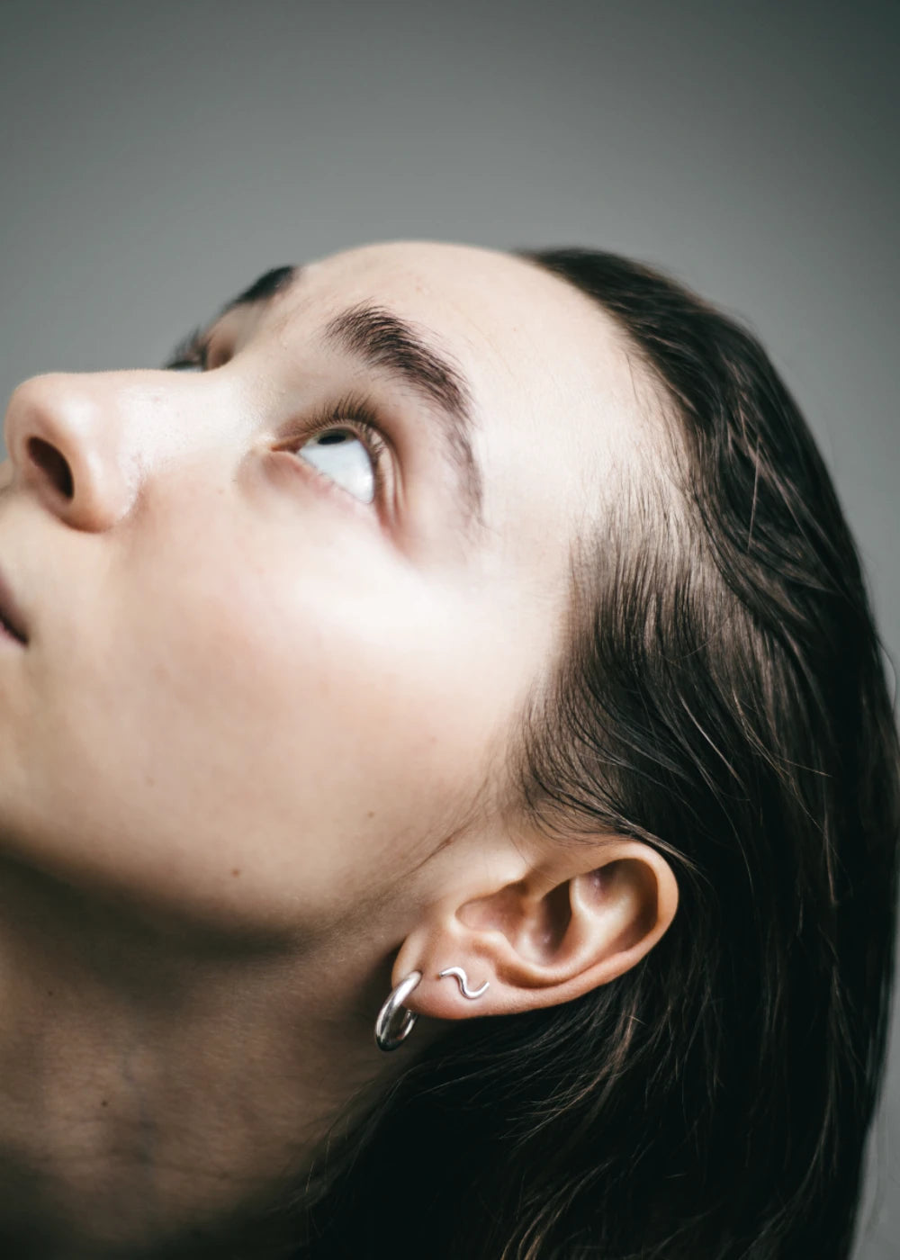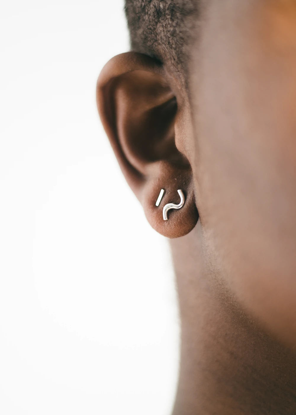 Ett litet smycke för örat. Handgjord av återanvänd sterling silver. Säljs separat, lägg till en till om du vill göra det till ett par.